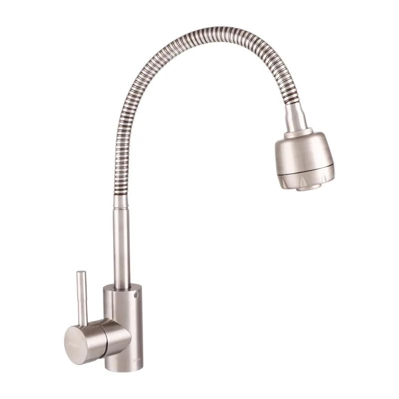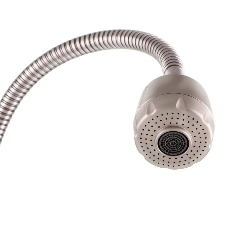 Змішувач для кухні Haiba SUS 021 з гнучким виливом (HB3912) являє собою дуже цікаве технологічне рішення. Вилив змішувача зроблений з гнучкої сантехнічної гофри, що володіє здатністю утримувати надану форму. Гофра вкрита гладкою силіконовою оболонкою, тому не накопичує бруд і легко миється. Вилив оснащений перемикачем аератором, який має два режими формування води: душ або струмінь. Корпус змішувача зроблений з неіржавіючої сталі. Управління - одноручне. В якості запірного елемента використовується змінний керамічний картридж. Кріплення - на шпильці з притискною сталевою шайбою. Для подачі води служать два гумові шланги, що входять в комплект поставки.