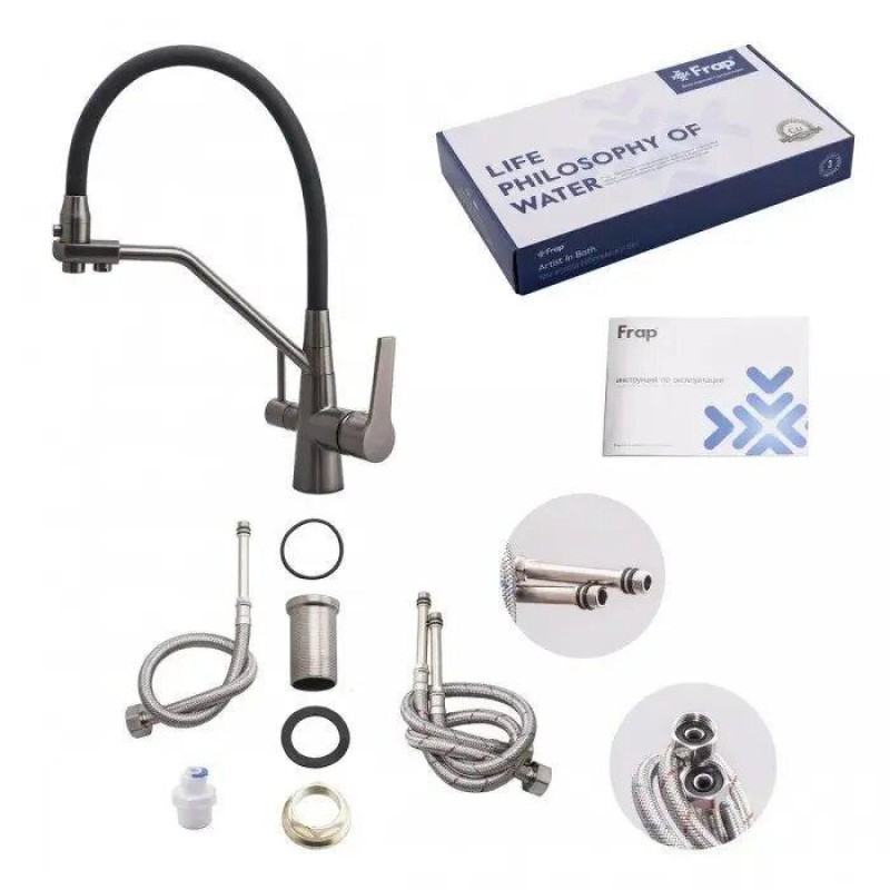 Те, якою буде ціна на кран для кухні FRAP F4374-15, збройова сталь від виробника, багато в чому залежить від матеріалу, з якого його було зроблено. Найкращі та найдорожчі варіанти — це латунь або бронза, а також якісні стальні сплави. Бюджетні моделі роблять з силуминового сплаву, який служить менш за всі перераховані та є менш надійним. Для керування водним потоком можуть використовуватись механічні вентилі або картриджі з пластику. Іноді конструкція змішувачів термостати, сенсори та інше електронне обладнання.