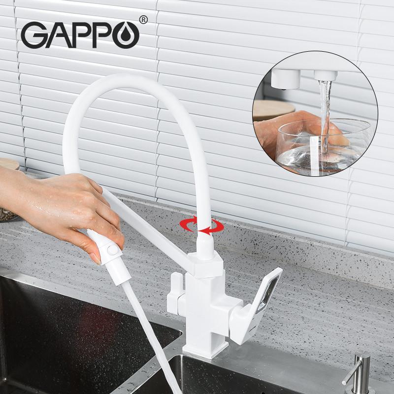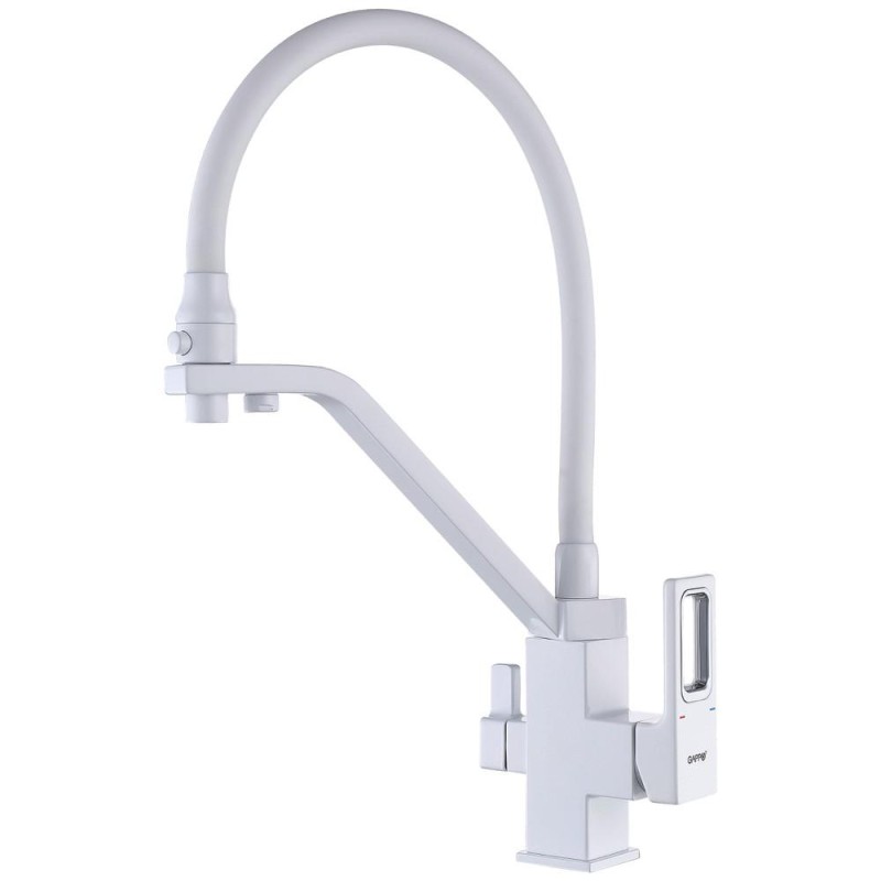Змішувач для кухні на дві води GAPPO G4317-8 з гнучким виливом, білий
