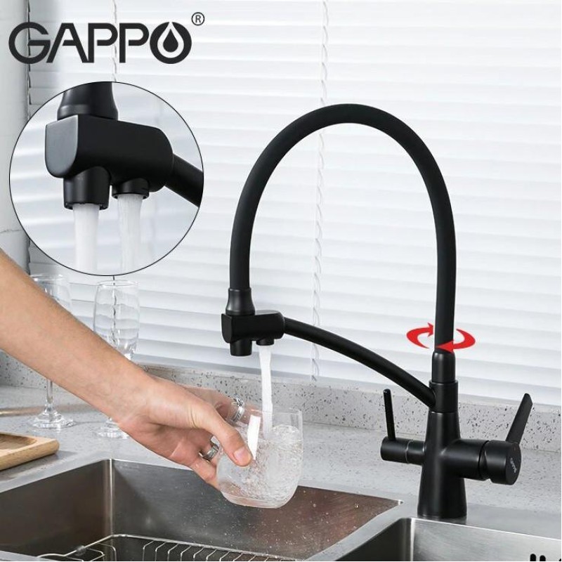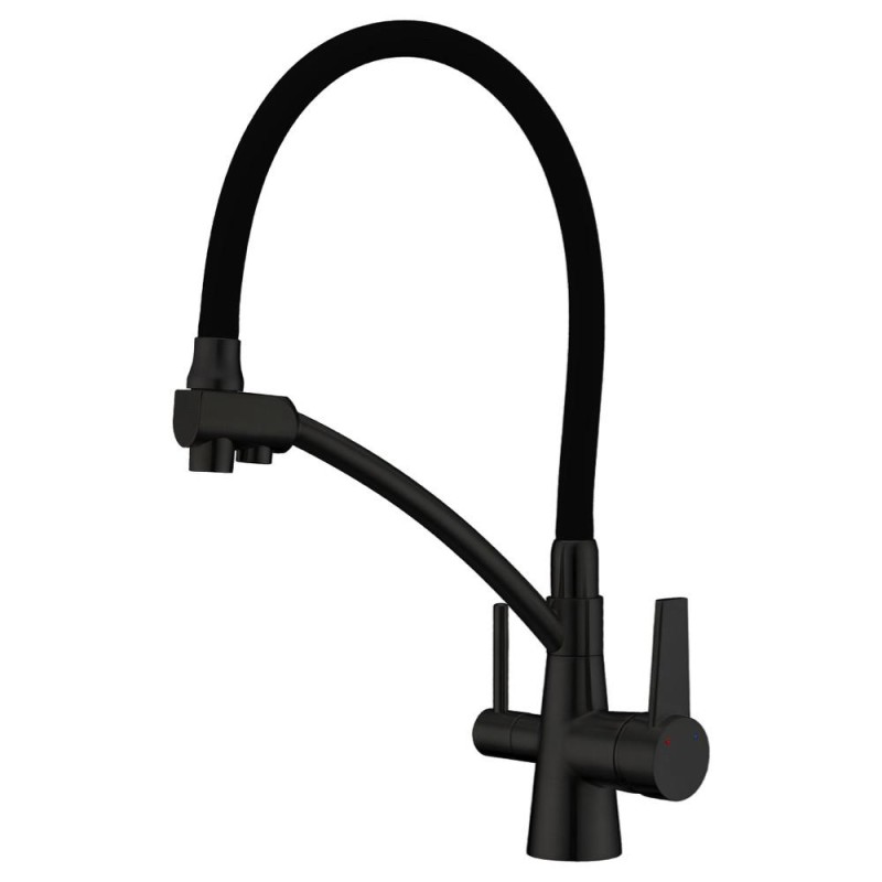 Змішувач для кухні на дві води GAPPO G4398-16 з гнучким виливом, чорний
