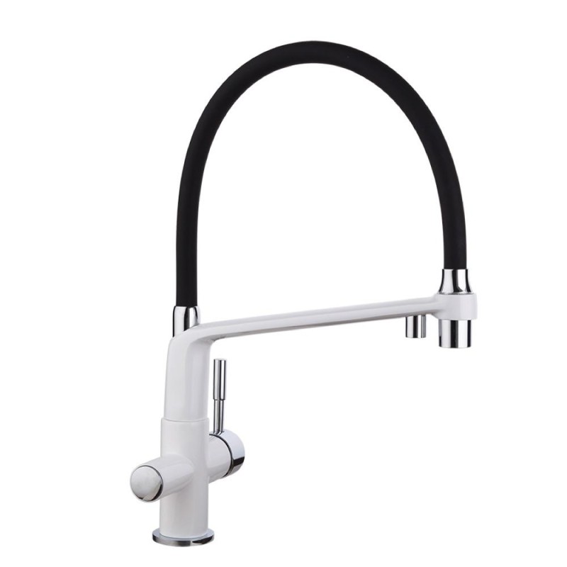 Змішувач для кухні на дві води GAPPO G4398-9 з гнучким виливом, білий/чорний