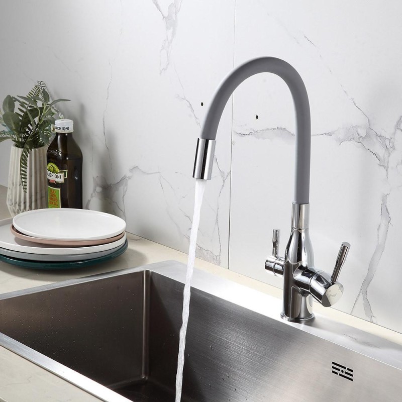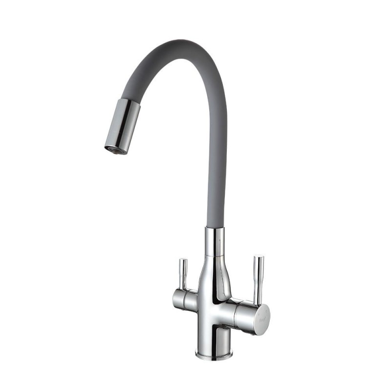 • Естетика та стійкість: Сірий колір виливу в поєднанні з хромованим покриттям корпусу змішувача Frap F4396 надає вашій кухні сучасний та елегантний вигляд. Матеріал корпусу з силуміну та латуні забезпечує високу міцність та стійкість до впливу часу.