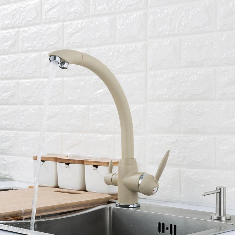 • Подвійна система подачі: окремий важіль дозволяє користуватись очищеною водою з осмосного фільтра, не змішуючи її з водопровідною.