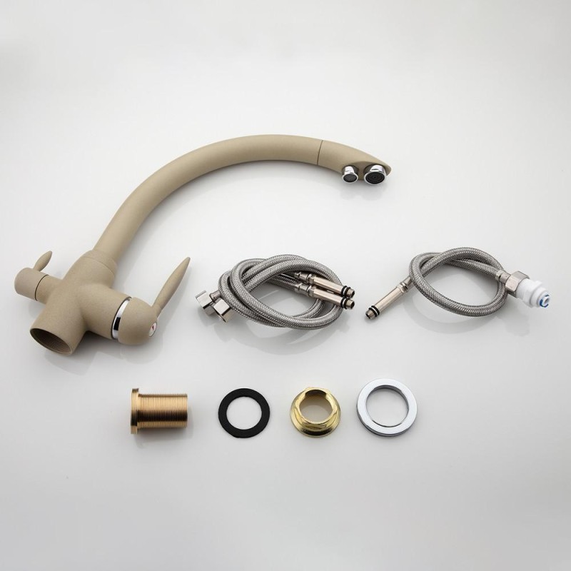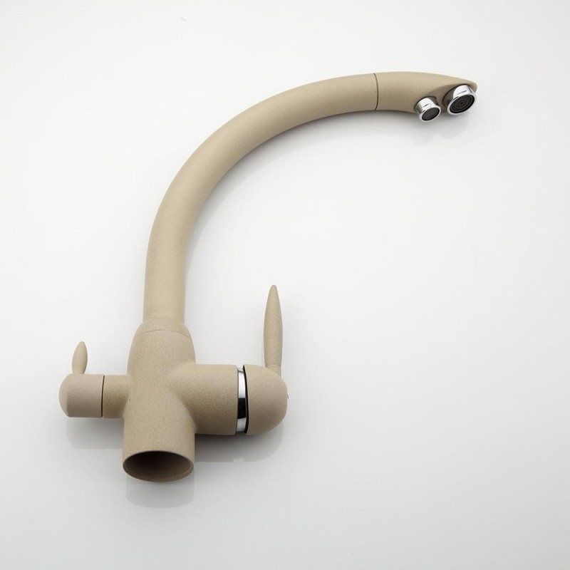 Змішувач для кухні під фільтр FRAP F4399-20, висувний вилив, Ø35, бежевий