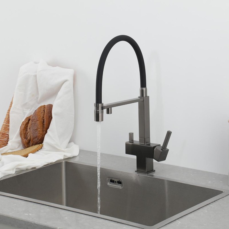 Змішувач для кухні під осмос GAPPO G4395-59 з гнучким виливом, збройова сталь