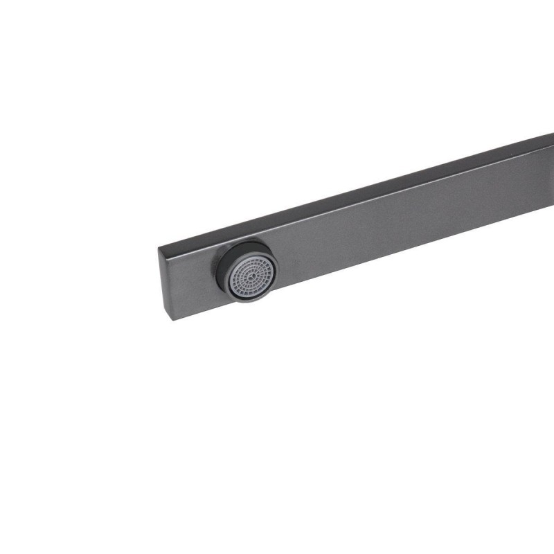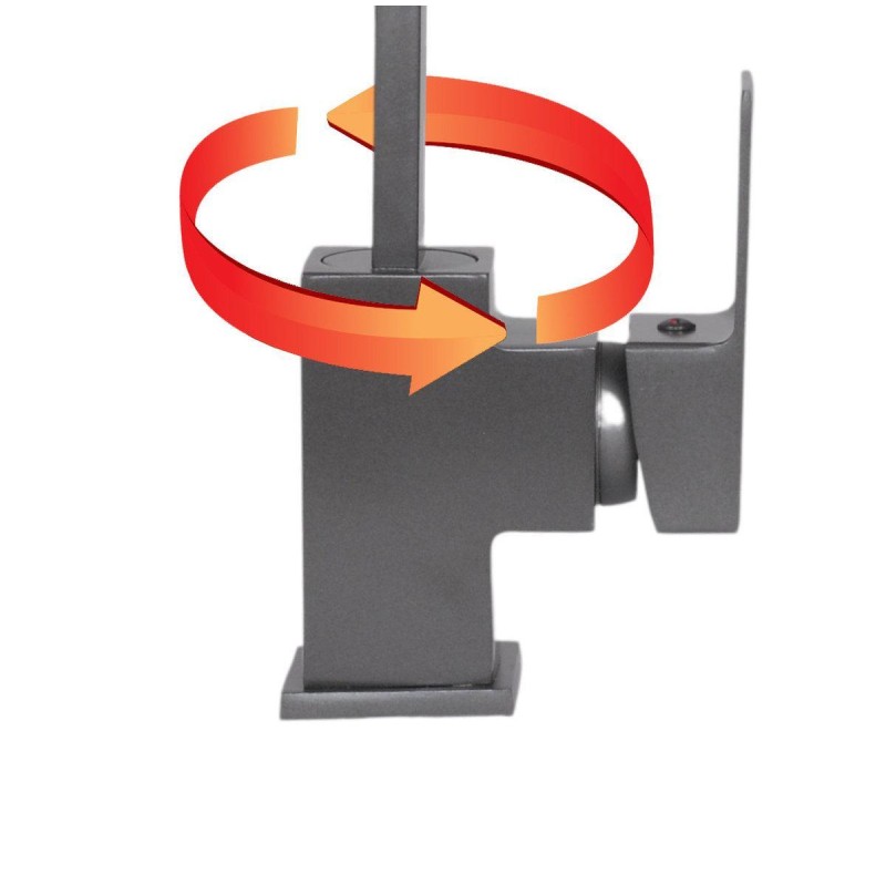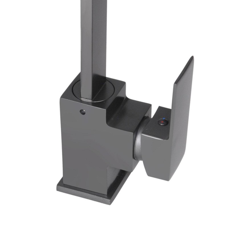 Змішувач для Wezer PRO4-02-GUNGREY з Г-подібним виливом. Стильне та сучасне рішення для вашої кухні. Виглядає красиво в будь-якому інтер'єрі. Чорний колір елегантно доповнює дизайн світлих і темних відтінків. Вилив на верхній частині у прямий. Це дозволяє набирати габаритні ємності. Гусак не загнутий і не чіплятиметься. Виготовлений з нержавіючої сталі та пофарбований порошковою фарбою. Вона надійно зчепляється з металом і не злазить під час експлуатації. Вилив поворотний, що так само покращує ергономічні властивості змішувача. Важіль для регулювання напору та температури великого розміру, його зручно відкривати, налаштовувати та контролювати.