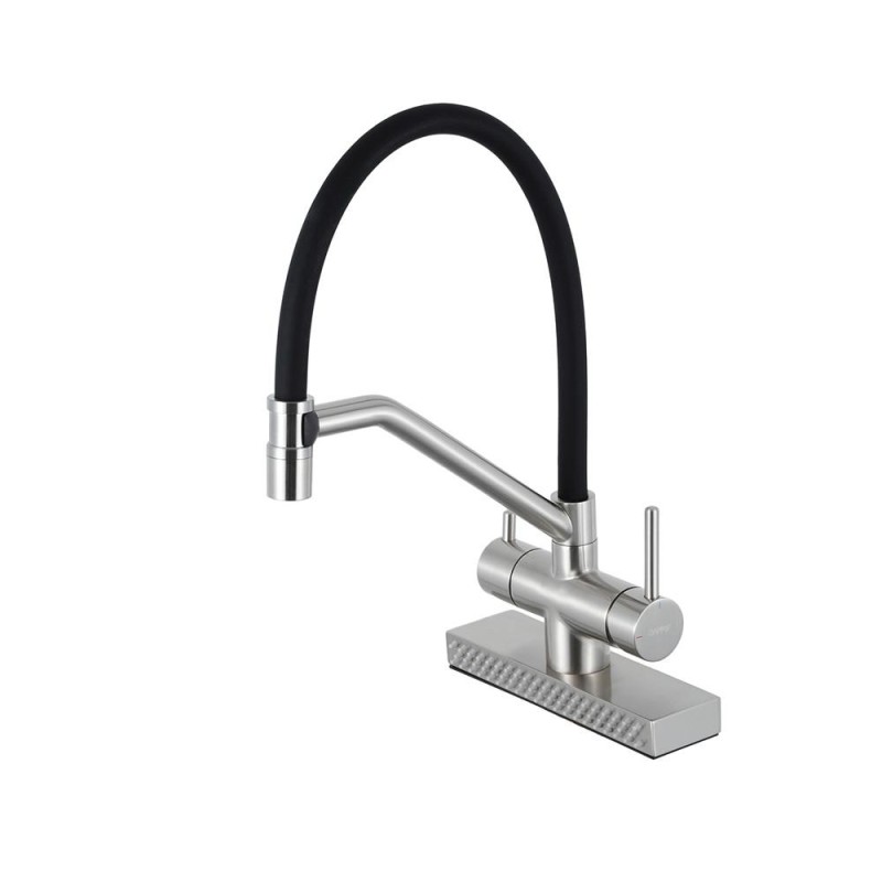 - Маневреність. Гнучкий вилив дозволяє легко направляти струмінь води в будь-яку сторону, а магнітний фіксатор допоможе зафіксувати вилив, коли він більше не потрібен.