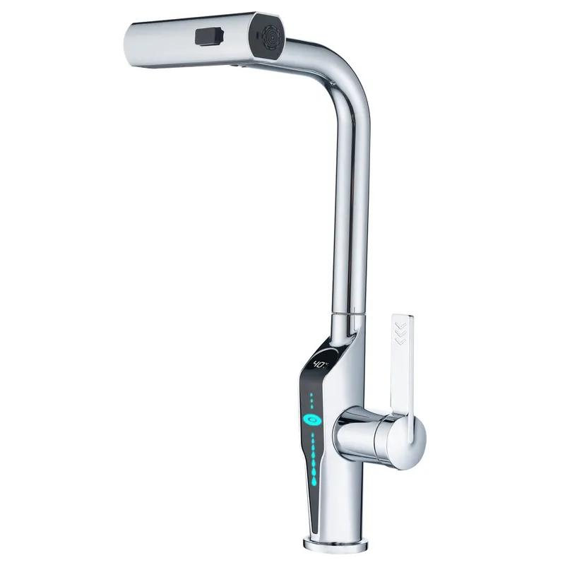 Змішувач для кухні з висувною лійкою Mixxus FALCON 014, 4 режими, з індикатором температури (MI6838)
