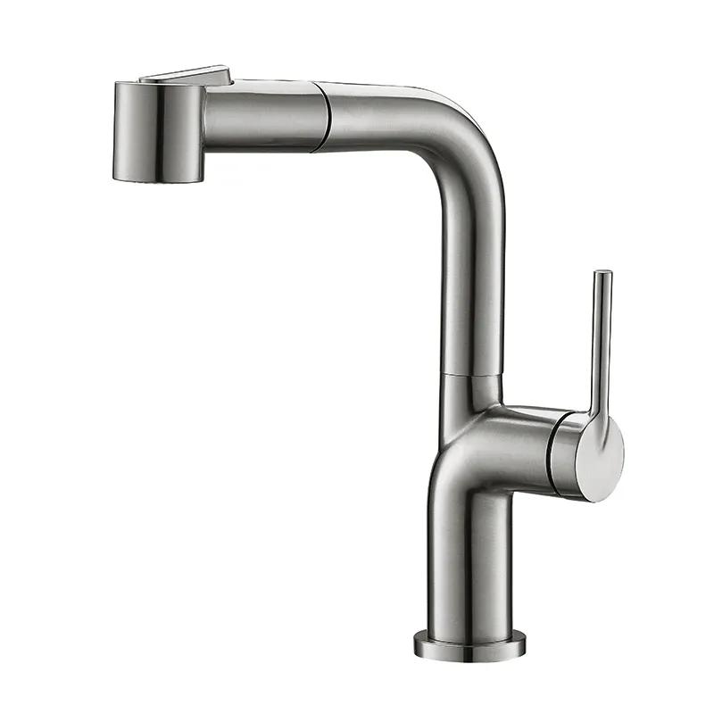 Змішувач для кухні Koer KI-70021-02 з нерж. сталі SUS304 з висувним виливом (Колір нерж) (KR4798)