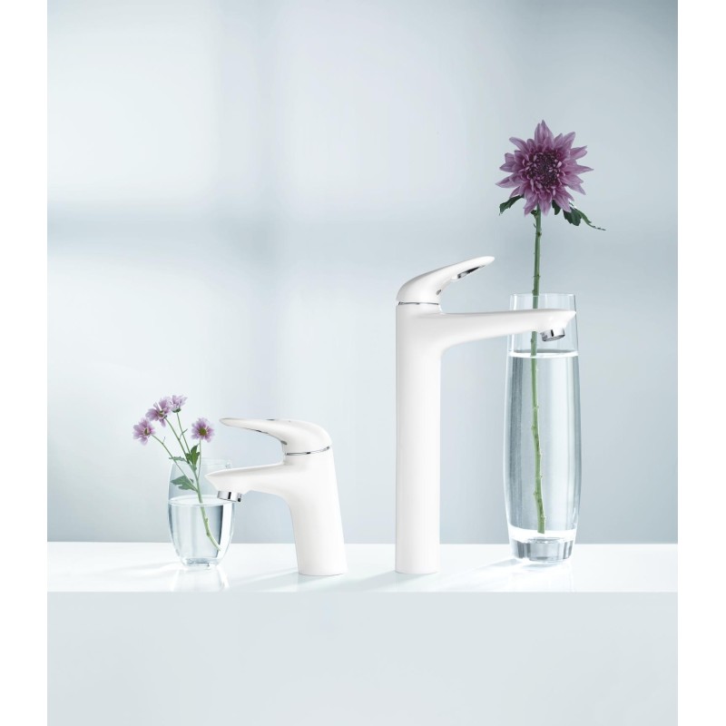 Для тих, хто шукає кран для раковини у стилі модерн та найвищої якості, змішувачі для умивальника Grohe забезпечують відмінну продуктивність. А унікальне зносостійке покриття розраховане на довгі роки використання. Одноважільний змішувач для раковини Grohe Eurostyle білого кольору оснащений технологією плавного важеля, яка дозволяє легко регулювати температуру, тиск і потік води. Його система швидкого монтажу також дозволяє легко встановити його з мінімальними зусиллями та витратами.