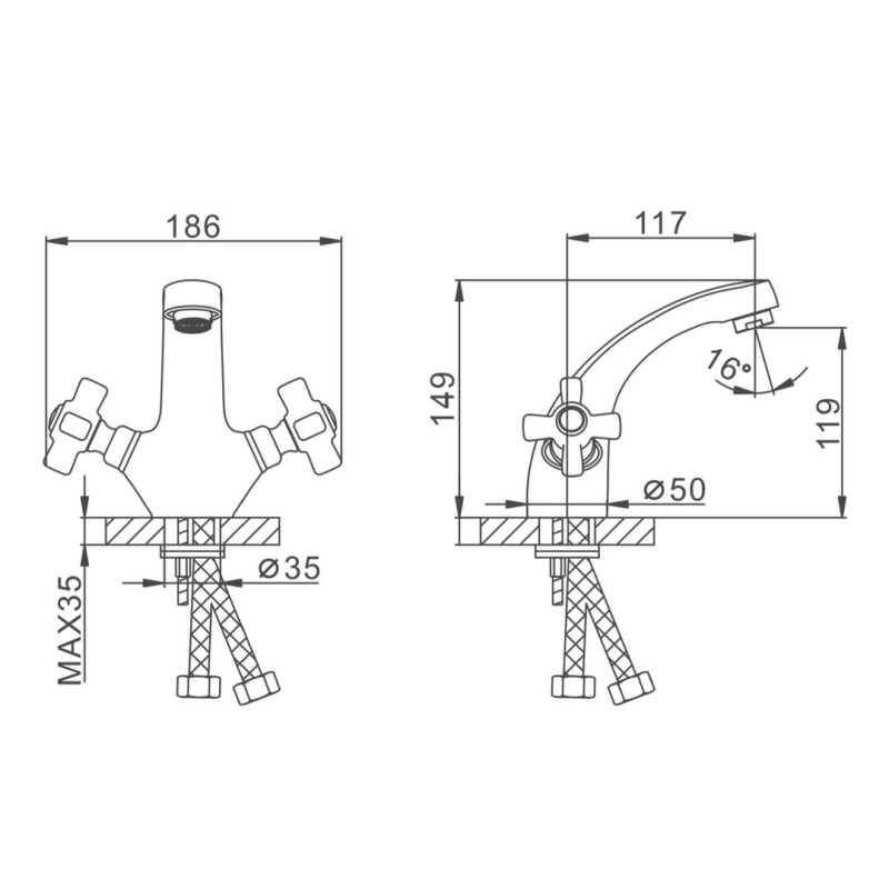 Тип змішувача (крана) Двохвентильний