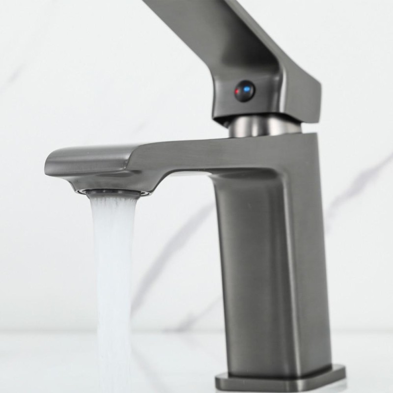 Змішувач для умивальника FRAP F1084-9, литий вилив, збройова сталь - ідеальний вибір для стильного і тривалого використання.