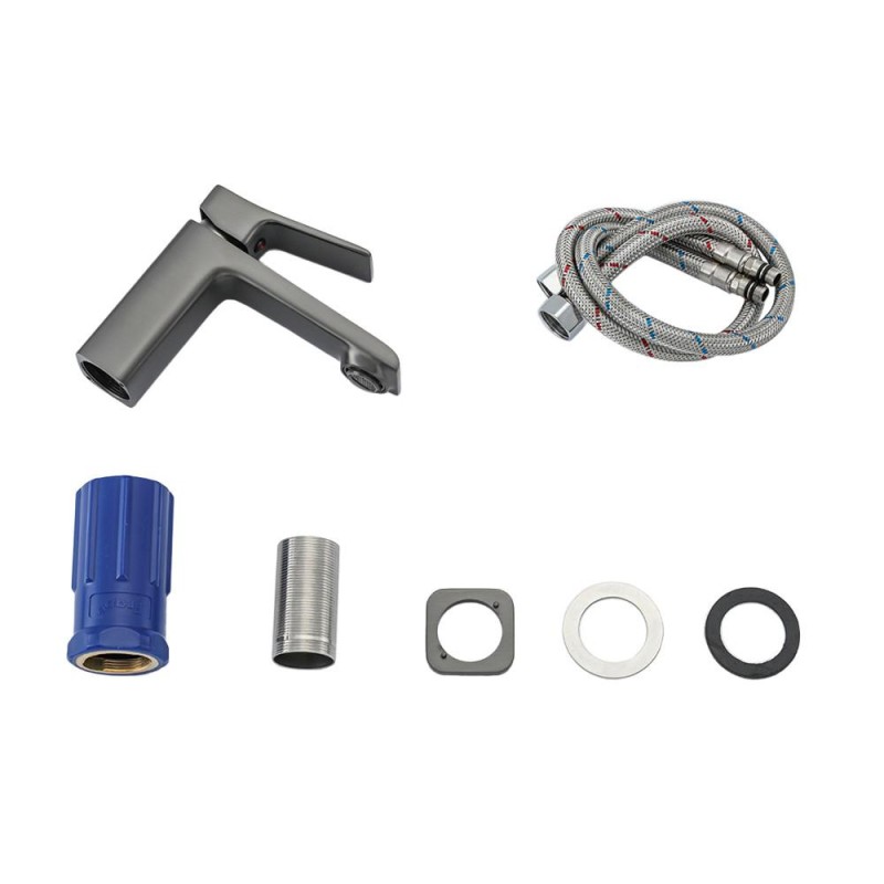 Змішувач для умивальника FRAP F1084-9, литий вилив, збройова сталь
