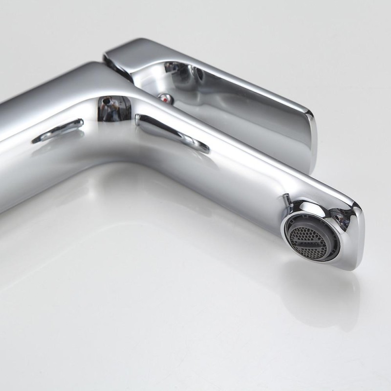 Змішувач для умивальника FRAP F1086, литий вилив, латунь, у кольорі "хром" — це поєднання естетики, практичності та довговічності.