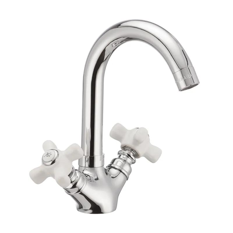 Двовентильний змішувач Haiba Odyssey 274 виконаний у традиційному для цього типу сантехнічних пристроїв дизайні. Кран має високий гусак, який оптимально підійде для глибоких раковин. Вилив поворотний, що дозволяє при необхідності прибрати його вбік або підставити достатньо місткий посуд.