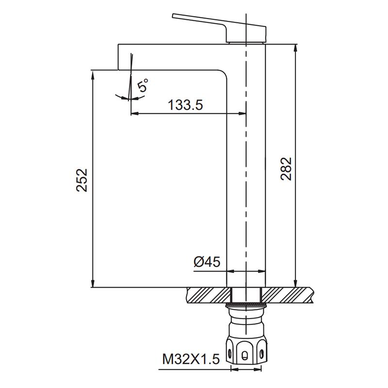 Висота змішувача (мм) 282