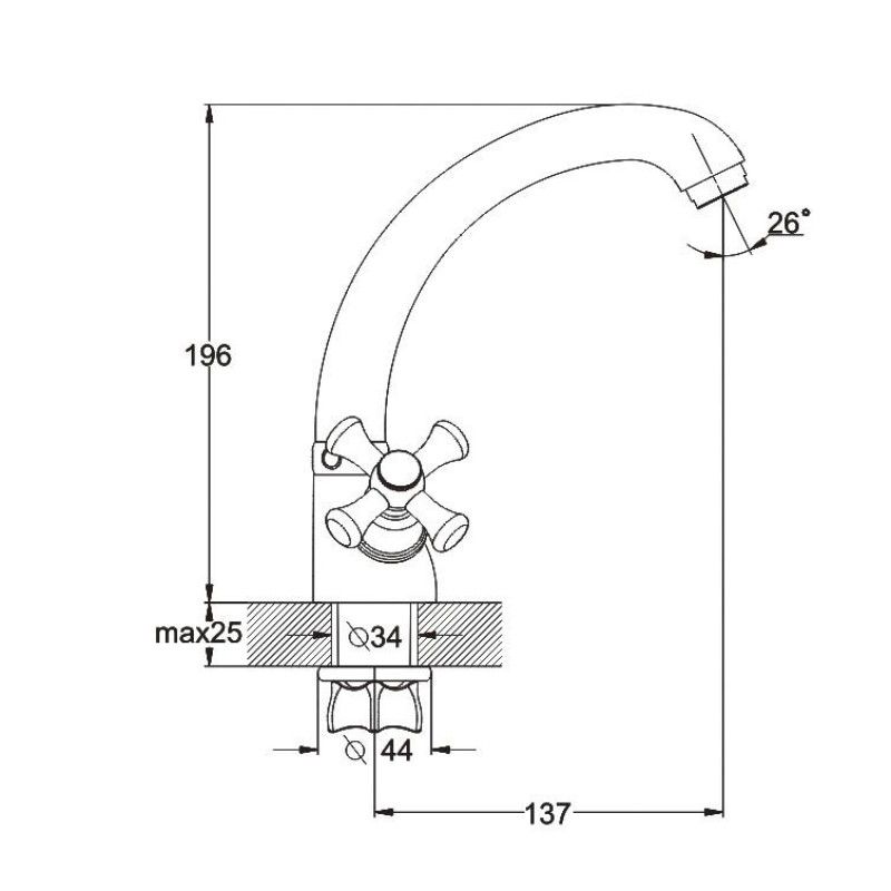 Змішувач для умивальника/кухня WEZER TLC1-827, хром