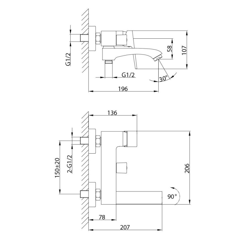 - Керамічний картридж 55-31 (30 мм) гарантує плавне регулювання температури та напору води.