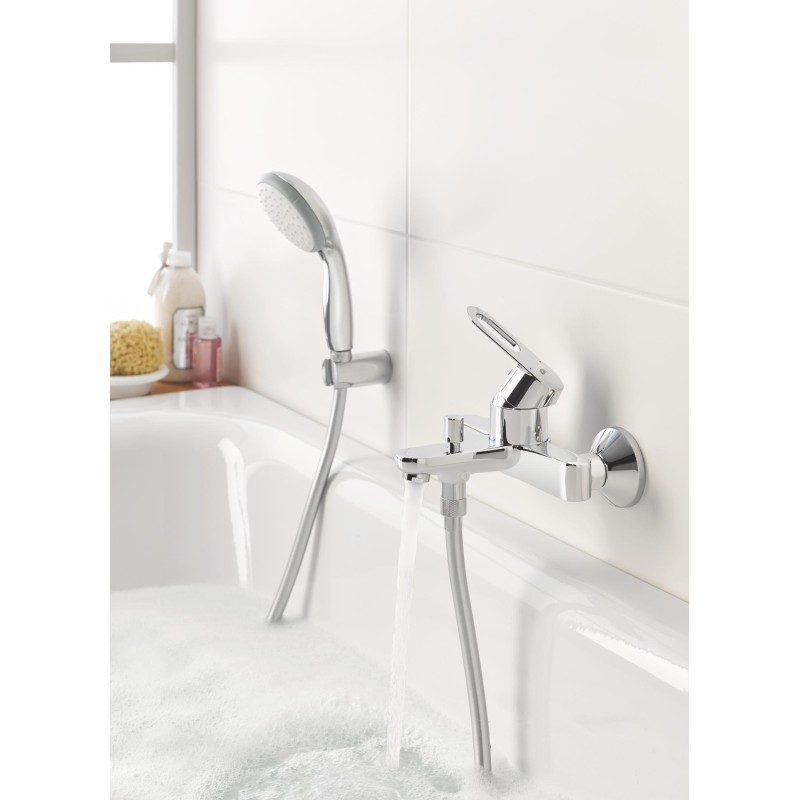 Особливості Автоматичний перемикач: ванна/душ. Вбудований зворотний клапан у душовому виході 1/2. S-подібні сполуки. Захист від зворотного потоку Клас шуму I за DIN