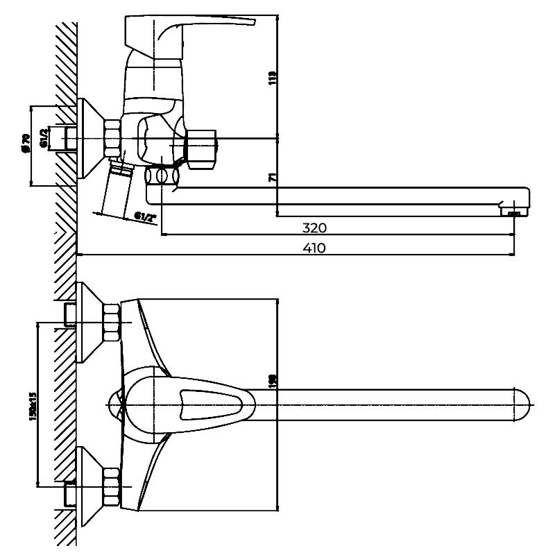 Вид виробу Змішувачі для ванни з довгим виливом