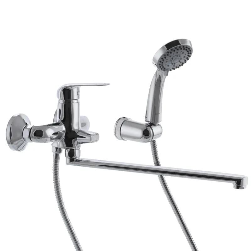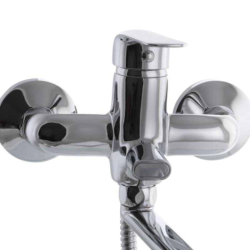 Одноручковий змішувач для ванни Haiba Dario 006 (HB0858) закріплюється на вмонтованих в стіну трубах за допомогою ексцентриків, що закриваються декоративними чашками в процесі монтажу. Сам змішувач виготовлений з латуні категорії А. Поверхня корпусу хромована і відполірована до дзеркального блиску з легким сталевим відтінком. Серед інших моделей змішувач виділяється поєднанням 322 мм поворотного виливу з вбудованим аератором Neoperl, 35 мм іспанського картриджа і євро перемикача, що забезпечує високий рівень комфорту експлуатації. Комплект змішувача включає також 5 режимну лійку з 1,5 метровим шлангом і утримувачем для лійка, набір гумових прокладок, ексцентрики з декоративними чашками і аератор.