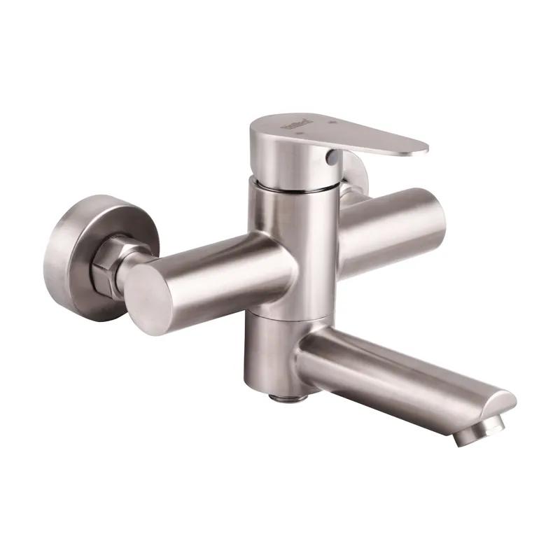 Змішувач для ванної кімнати з коротким виливом Haiba DAX 009 відрізняється компактним ергономічним дизайном. Відмінною особливістю пристрою є розташування перемикача режиму роботи. Він розташований безпосередньо біля важеля керування подачею води. Кран виготовлений з нержавіючої сталі, що забезпечує йому високу міцність та зносостійкість, які не поступаються змішувачам для ванної з латуні.