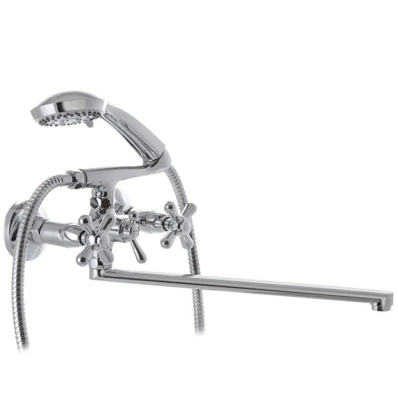 Двухручковий Змішувач для ванни Haiba Dominox 143 (HB0070) має 320 мм вилив з вбудованим аератором Neoperl, латунний хромований і відполірований корпус і кульовий перемикач. У комбінації з керамічними німецькими напівоборотними кран-буксами це значно підвищує зручність і функціональність змішувача. Варто відзначити і його комплектацію включає настінний тримач для лійки, саму 5 режимну лійку, 150 см шланг, а також ексцентрики для кріплення на труби водопостачання, декоративні чашки до них і гумові прокладки. Колір змішувача - сталевий.