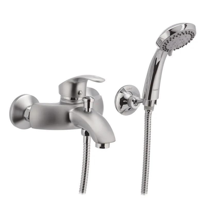Одноручковий змішувач для ванни Haiba Mars 009 матовий (HB0258) компактний і вкрай зручний у використанні. Його латунний корпус повністю литий і має 15 см вилив з вбудованим аератором Neoperl. У даній моделі застосовується штоковий перемикач і 40 мм картридж як запірний елемент. Зовнішня поверхня корпусу хромована, має сталевий колір і матову обробку сатин. Закріплюється змішувач на ексцентрики на вмонтованих в стіну трубах. Комплектація включає самі ексцентрики, декоративні чашки до них і гумові прокладки, а також 5 режимну лійку зі шлангом і утримувачем. Комплектація включає і аератор.