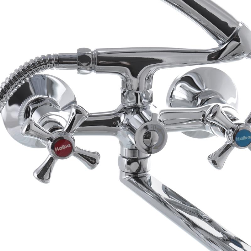 Корпус крана виконаний з латуні, а як декоративний шар використовується хромування. Воно надає пристрою особливого кольору і додає дизайну елегантності. Наявність поворотного гусака біля крану змішувача у ванну Haiba Smes 140 істотно розширює межі його застосування, навіть за умови встановлення у душовій кабіні. За допомогою виливу можна швидко наповнювати великі ємності, зручно мити лапи домашніх тварин або купати дитину.