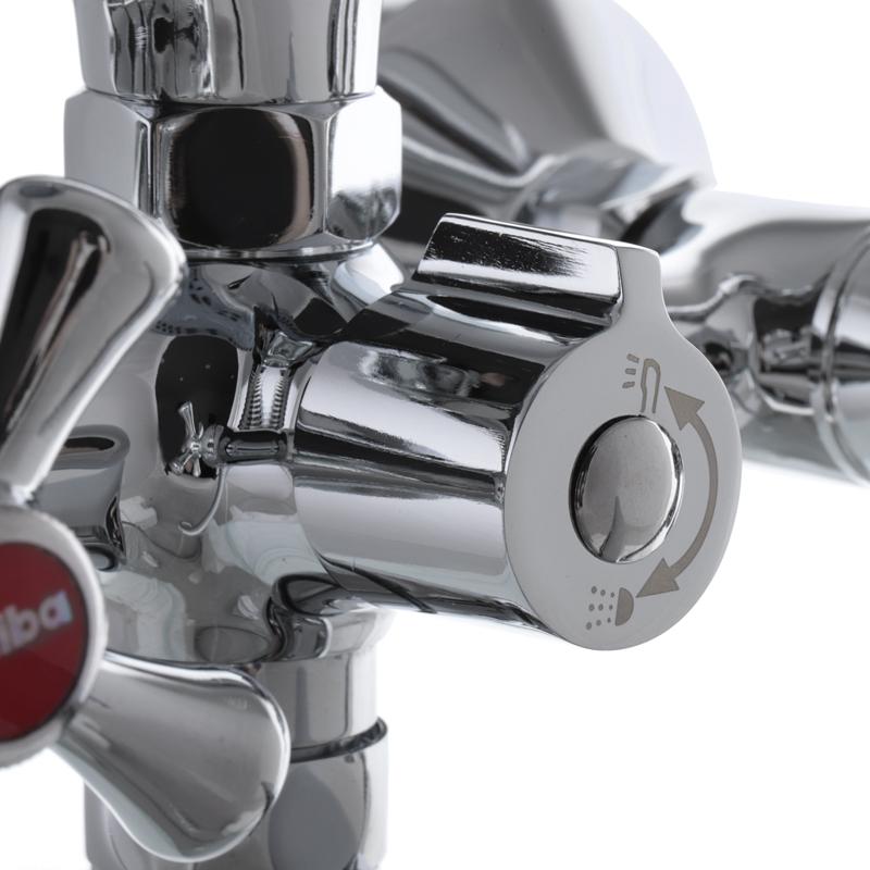 - Девіатор. Перемикання режимів роботи у поданому крані здійснюється за допомогою картриджа. Перевага цього девіатора - він не чутливий до тиску води. Тому незалежно від того, виконується подача чи ні, картридж автоматично не переключиться на початкове положення.