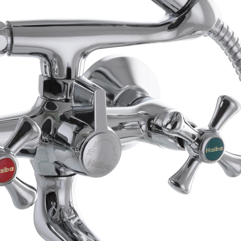 Сучасний змішувач для ванни латунний Haiba™ серії HB0367 оснащений верхнім дивертором душ/ванна, нижнім відведенням для підключення шланга для ручного душу, аератором, кран буксами, і підключається на два отвори за допомогою ексцентриків. Ретро змішувач у ванну має привабливий зовнішній вигляд. Функціональний і простотою в застосуванні високої якості з 5 років гарантії.