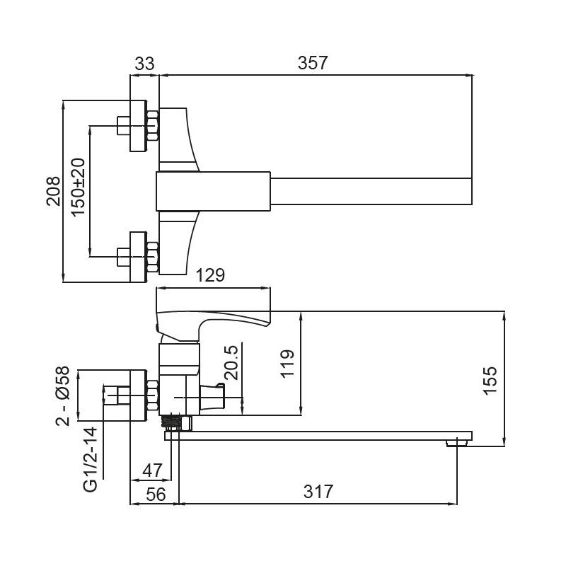 Вид виробу Змішувачі для ванни з довгим виливом
