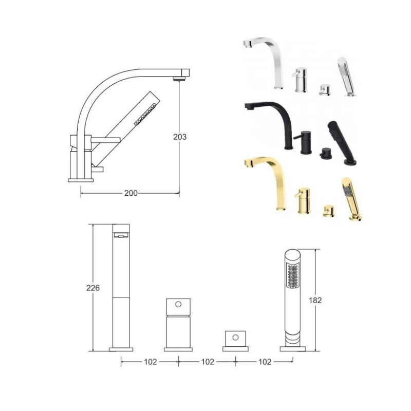 Колекція доступна в 5 колірних варіантах: хром, золото, яскраве золото, матовий чорний і графіт.